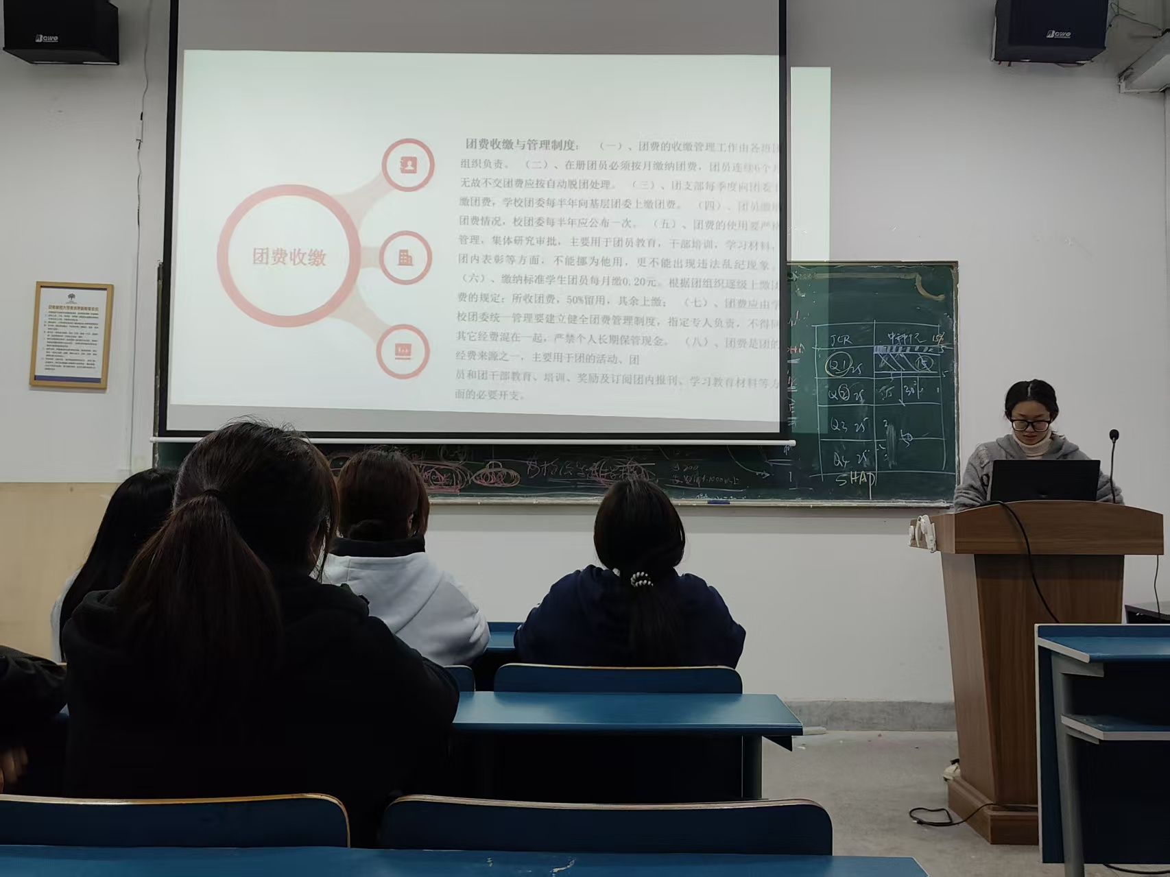 一次团情学习。各班级团支书带领全体团员共同学习中国共产党党史和党章,研读了《中国共产主义青年团发展团员工作细则》,加强了新生团员对共青团的“三会两制一课”、团员发展细则和团费收缴使用管理规定等内容的了解,进⼀步增强了团员们的使命感、荣誉感和归属感。