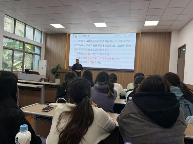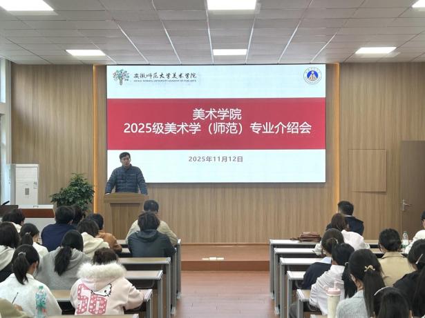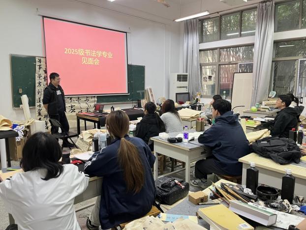美术学(师范)专业负责人刘坛茹教授回顾了美术学(师范)专业的发展历程与成就,鼓励同学们以饱满的热情珍惜四年大学时光,在艺术之路上坚定前行。绘画专业负责人周群教授解析了绘画专业的培养模式,展示了师生近年来在全国美展等重要展览中的入展成果;杨涛、卢攀攀、鲍涛老师分别介绍了油画、中国画、综合绘画专业方向的教学情况。视觉传达设计专业负责人刘畅博士结合日常生活诸多方面,向同学们介绍视觉传达设计,引导大家在生活中发现并理解该专业的内涵,同时详细介绍了大学四年课程设置情况。工艺美术专业负责人方新副教授详细介绍了专业的办学历史、师资力量及近年取得的成果,深入解读了专业人才培养目标与课程设置体系,并以 “扎实”“融通”“创新” 为核心关键词,为新生未来四年的学业规划提供了针对性建议。此外,环境设计、动画、雕塑、书法学专业负责人也分别结合本专业情况,向同学们作了详细介绍。多位教师及优秀本科生参加了见面会,就本科课程学习与未来职业发展规划与新生们进行了深入交流。
