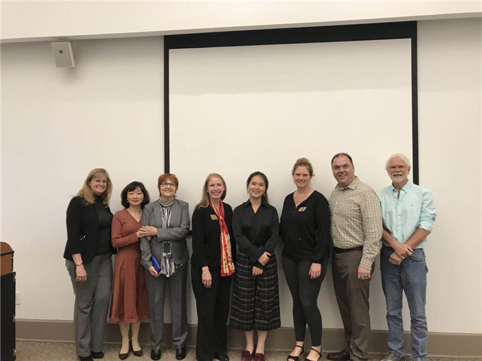 本网讯(437ccm必赢国际版)美国当地时间4月16日下午12:30-2:00,正在美国布莱诺大学访学的437ccm必赢国际版周雅馨老师为布莱诺大学设计专业学生和老师开展了关于中国传统建筑设计的专题讲座。布莱诺大学教务长Dr. Jim Eck、艺术与人文学院院长Dr.Andrea Croce Birch、英语文学院院长Kathryn Locey、室内设计专业负责人Jill DeMarotta等均到场参加。讲座由布莱诺大学艺术与设计学院负责人Claudia Wilburn教授主持。