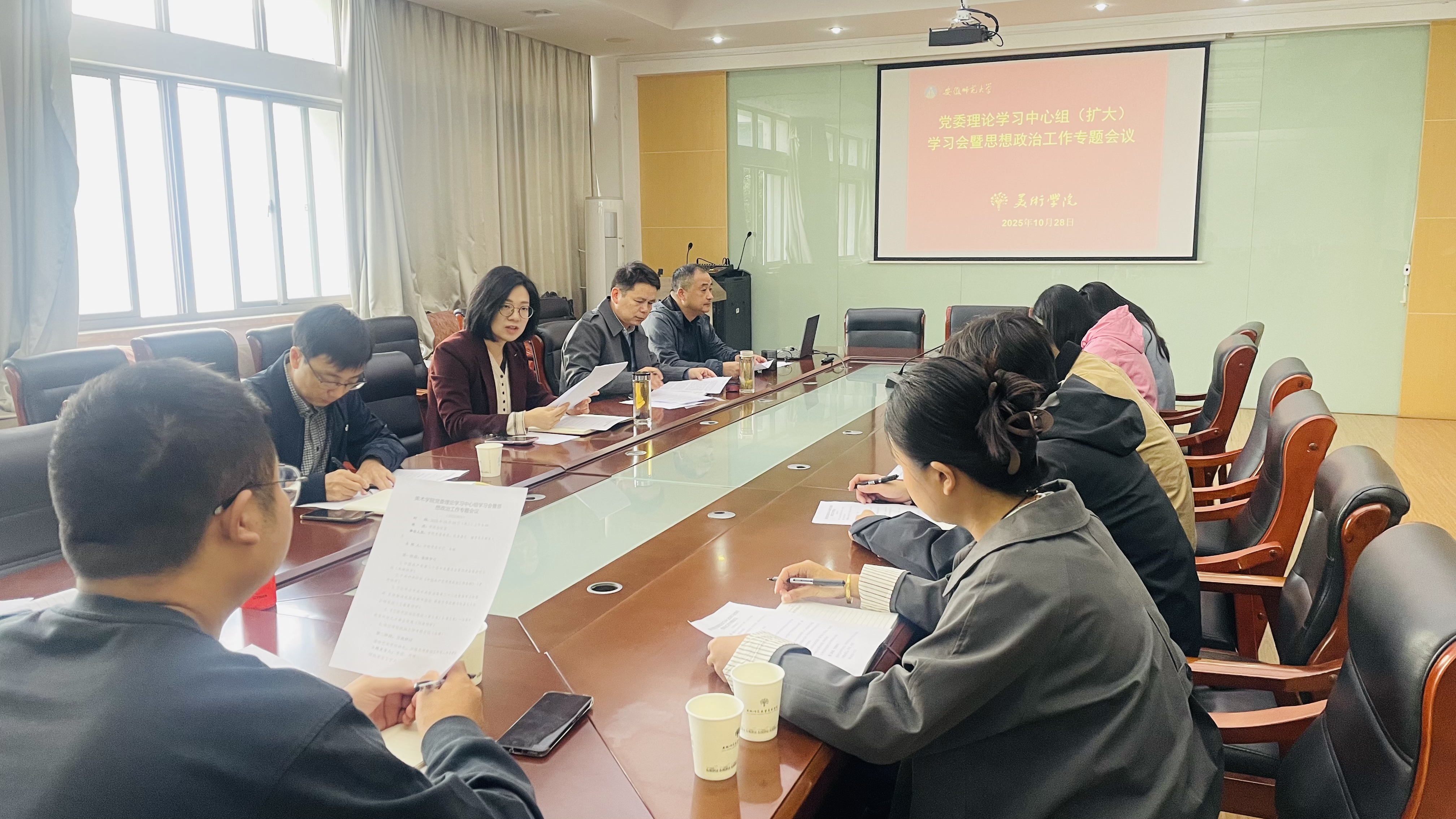 10月28日上午,437ccm必赢国际版在学院大会议室召开党委理论学习中心组(扩大)学习会暨思想政治工作专题会议,学院党委委员、纪委委员、辅导员及相关人员参加会议,会议由学院党委书记朱琳主持。