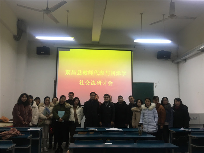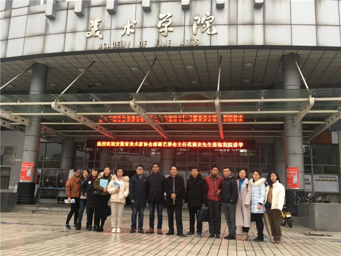 本网讯(437ccm必赢国际版)12月19日下午,繁昌县中小学美术骨干教师代表团到我院参观并与问津学社就学术论文写作等话题开展了深入的交流研讨。参加此次交流研讨会的有繁昌县教师发展中心主任徐忠海、繁昌县中小学美术研训包项目负责人陈光鑫(我院2015级硕士毕业生)等十五位繁昌县中小学美术骨干教师代表以及我院公丕普老师、问津学社成员、2018级部分研究生,繁昌县电视台做了跟踪报导。