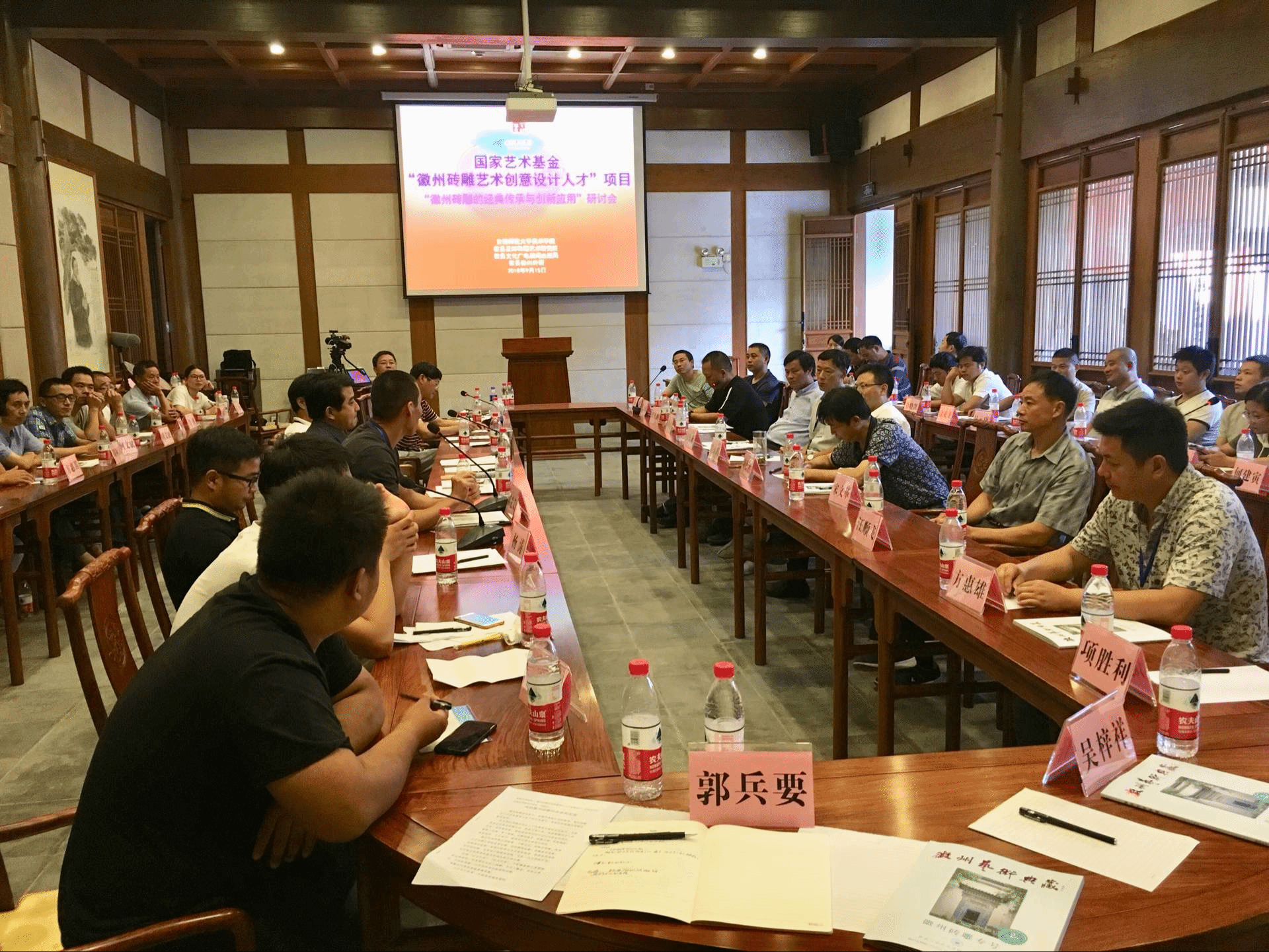 9月15日下午,国家艺术基金“徽州砖雕创意设计人才培养”项目学员结业作品展,在歙县徽州府衙开幕,同时召开了“徽州砖雕经典传承与创新应用”学术研讨会。