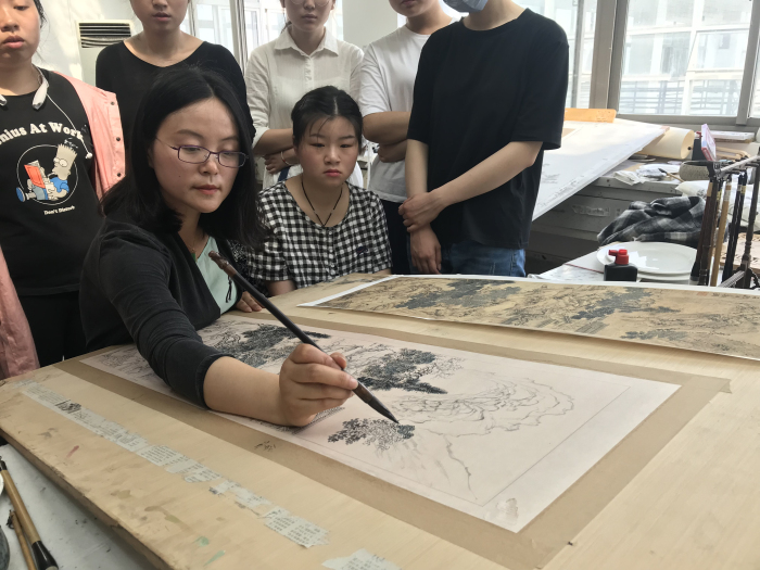 韩燕梅老师授课方式轻松,与学生互动自然,在激发学生们对国画山水浓烈的学习兴趣的同时,也生动呈现了一堂美院专业课程教学过程,良好的教学效果得到了听课教师的一致肯定。