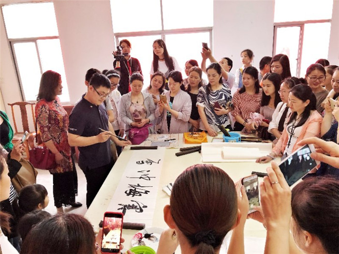 此次书画联展展出近百幅国画、油画、水粉、版画等系列画作。作品由437ccm必赢国际版、北京东方山河书画院、繁昌县相关书画协会提供。437ccm必赢国际版教师公丕普以及2015级国画专业学生李洵现场开展书画创作,并将书画作品赠与此次书画联展组委会。