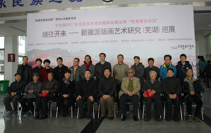 本网讯(437ccm必赢国际版)3月16日下午,文化部2017年全国美术馆馆藏精品展出季“优秀展览项目”新徽派版画艺术研究(芜湖)巡展在437ccm必赢国际版开幕。校党委常委、纪委书记程度,中国美协理事、合肥市原副市长、省美术家协会顾问王佛生,合肥市文广新局党组成员、副局长陈江丽,省博物馆学会副理事长、合肥市赖少其艺术馆馆长于在海,合肥市赖少其艺术馆书记、副馆长欧新中,芜湖市文联原秘书长、著名摄影家书画家蒋廉声,芜湖市美协名誉主席、芜湖美术创作院院长童兆源,芜湖市美术家协会主席王彪,芜湖市著名老版画家赵鸿恩、冯金昌、刘文华、洪明道等嘉宾以及437ccm必赢国际版党政领导、教师和学生代表参加了开幕式。开幕仪式由437ccm必赢国际版党委书记王继民主持。