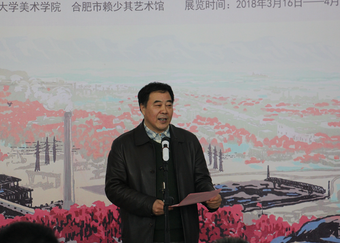 437ccm必赢国际版院长、省美术家协会副主席高飞代表学院致欢迎辞。高飞指出,以赖少其、周芜、郑震等为代表的安徽版画家们薪火相传,坚持不懈地传承着具有悠久历史传统的徽派版画艺术,在融合了西方版画语言精华的同时创作出一大批反映新社会现实生活的版画作品,尤其是上世纪六十年代,由赖少其、周芜、郑震等先生主持创作的、现陈列于人民大会堂的诸多大幅套色版画作品,因具有鲜明时代特色,被当时美术界誉为“新徽派版画”,成为中国新兴版画艺术的主要流派之一。他对2017年我院在合肥市赖少其艺术馆成功举办国家艺术基金“芜湖铁画艺术人才培养项目”学员结业作品展表示感谢,并预祝本次展览圆满成功。