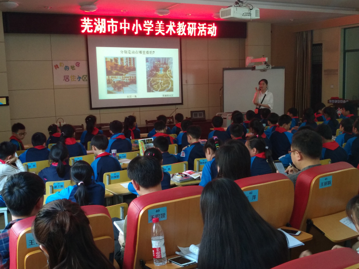 与此同时,学院积极构建“三位一体”的协同育人新机制,与芜湖市教科所共同打造“青年教师成长计划”。经过遴选,2014级刘祈芸同学作为优秀实习生代表参加4月10日下午开展的芜湖市中小学美术教研活动,面向全市近百位中小学美术教师执教美术课——《我们的社区》,整个课堂教学过程流畅完整,环环相扣。课后,由经验丰富的一线老师开展评课,他们对刘祈芸同学扎实的教学功底予以肯定,同时也提出了宝贵的改进建议。名师把脉,助力美术学专业学生师范教学技能的迅速提升。