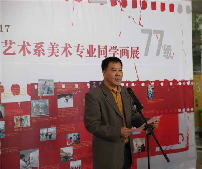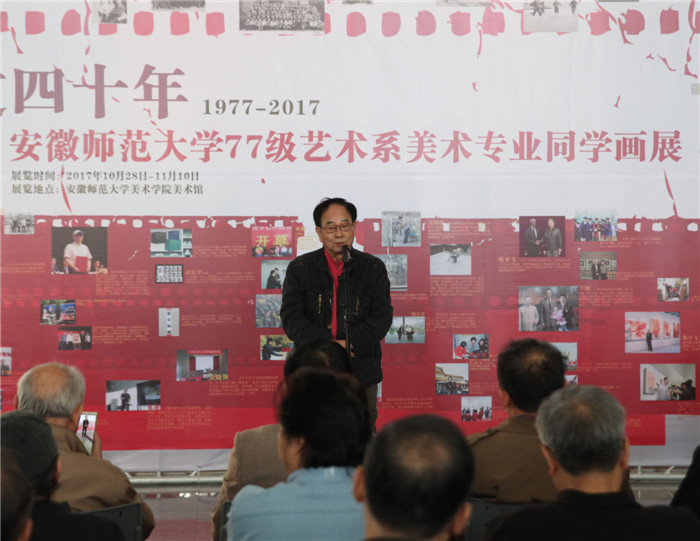 1977级同学代表,合肥工业大学教授,安徽省油画学会主席,437ccm必赢国际版原院长巫俊回顾了当年豪情万丈的大学岁月。在校读书期间老师们的良好品质以及老师们对艺术的探索精神和研究态度一直影响着我们。如今,1977级学生作为改革开放的见证者、参与者和受益者,通过自己的不懈努力也获得了社会的高度认可。虽然我们很多人已经年近六旬,但是对于艺术的虔诚和追求丝毫没有改变,创作热情更是有增无减。他希望同学们能继续为社会为艺术不断贡献自己的能量。