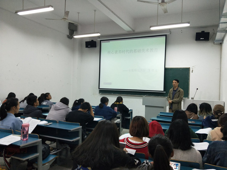 本网讯(437ccm必赢国际版)美术学专业以培养未来“准教师”为目标,而基础美术教育已步入核心素养时代。11月8日下午,我院朱德义教授为2017级美术学类专业同学带来一场题为《核心素养时代的基础美术教育》学术讲座,探索践行自主、合作、探究、问题为导向的核心素养学习方式。