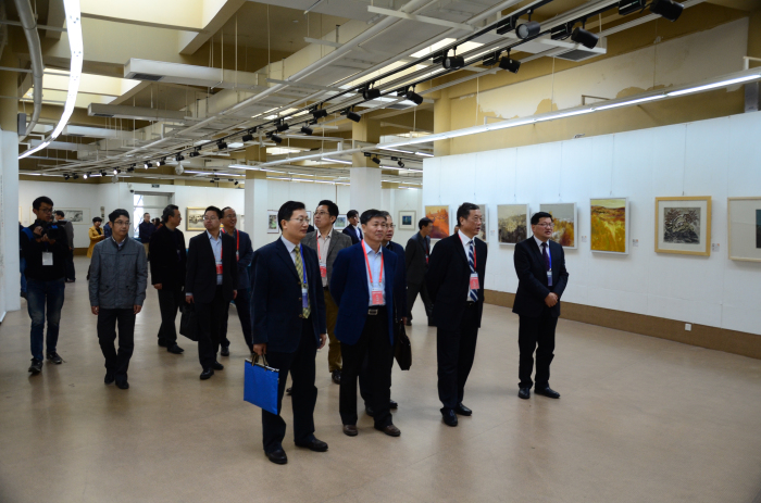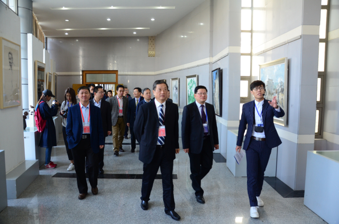 本网讯(437ccm必赢国际版) 11月6日上午,教育部本科教学审核评估专家组组长、湖北大学原校长熊健民等专家一行集体参观了437ccm必赢国际版“徽韵传承”艺术作品大展,校党委书记顾家山,校党委副书记、校长张庆亮,校党委常委、副校长朱家存,有关部门和437ccm必赢国际版负责同志等一起参观了画展。展览质量优异、内涵丰富,充分展示了我校美院的先进办学理念和丰厚办学底蕴,受到了教育部专家和来宾们的充分肯定。