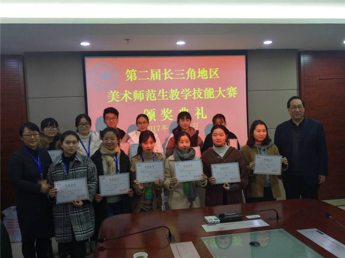 本网讯(437ccm必赢国际版)12月16日,由华东师范大学艺术教育研究中心、长三角美术教育研究联盟主办,合肥师范学院艺术传媒学院承办的“第二届长三角地区美术师范生教学技能竞赛”圆满落幕,合肥师范学院副院长姚本先教授亲自为获奖选手颁奖。我院派出三位选手参赛,取得一等奖两项和二等奖一项的优异成绩,我院朱德义教授获优秀指导教师奖。