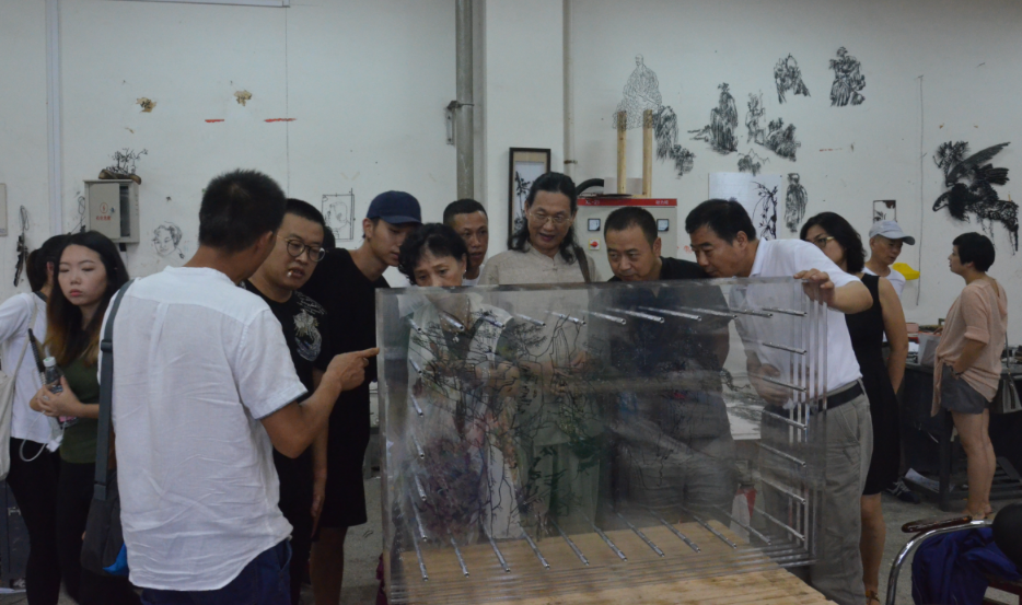 在结业典礼结束后,全体领导和教师们还到铁画工作室观摩了学员们创作的铁画作品。