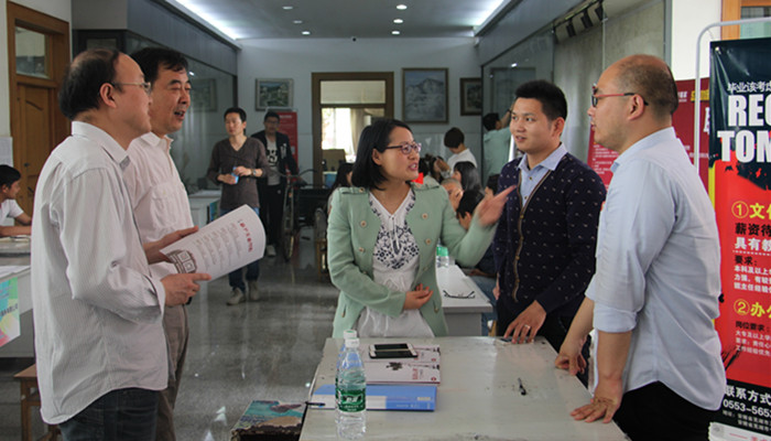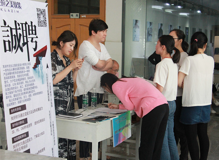 精美的布展,精致的作品,吸引了很多用人单位关注。让用人单位走进学院,走进展厅,这种特殊招聘会,一方面让用人单位可以直接通过毕业展上学生的作品,现场发掘适合自己企业的毕业生,另一方面,学生在向用人单位现场解读自己作品,介绍作品背后的设计思想的过程中,能让在场的用人单位对自己的专业技能有更深入的了解,使面对面地双向选择变得更加直观、透明,为毕业生与企业搭建了一个无缝对接的应聘招聘平台。