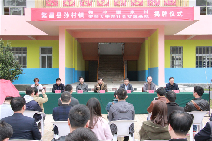 孙村镇镇长刘斌在致辞中说,437ccm必赢国际版历史悠久,师资力量雄厚,是省内举足轻重的艺术研究和创作团体。本次揭牌仪式的举行,是双方在人才智力和资源方面的深度融合,是实现地校双方互惠发展的重要途径。繁昌县将以与437ccm必赢国际版的地校合作为契机,围绕合作、共赢、发展主题,全力加快实践教学基地和画家村建设,积极推进旅游产品开发,把梅冲村打造成为具有影响力的地校艺术合作品牌。