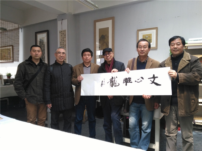 参展结束,王涛等人在院长高飞的陪同下参观了437ccm必赢国际版国画教室,并为437ccm必赢国际版题写四字“文心雕龙”以作纪念。