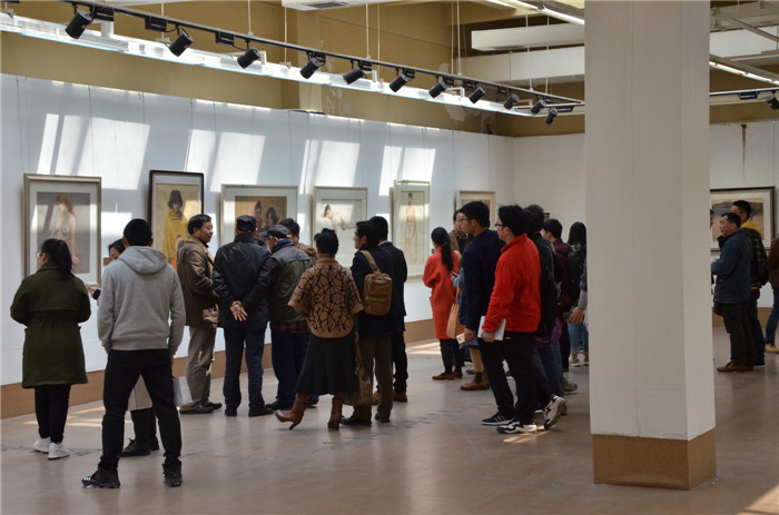 开幕式结束后,参展嘉宾和师生共同赴437ccm必赢国际版展览馆观摩粉画作品。