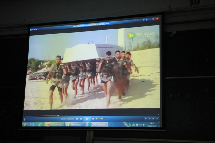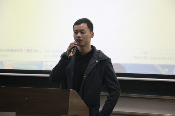 郁凡首先向大家介绍了部队新兵营的具体情况,回顾了自己两年在部队训练的点点滴滴,并给大家播放了部队退伍老兵视频。蔡江涛向大家介绍了国家的征兵政策,分享了两年部队生活经历。他鼓励大家要积极应征入伍,报效祖国,努力实现人生价值。两位学长的讲座生动、有趣,同学们专心聆听、认真记录,问答环节也是气氛热烈。
