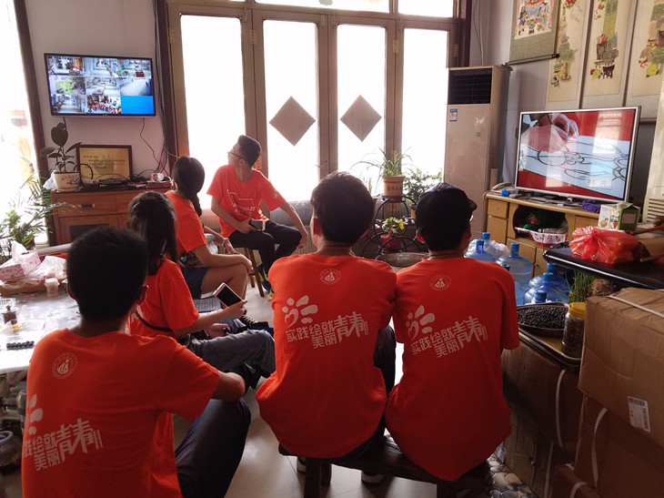团队一行观赏了由中央电视台录制的扑灰年画制作的详细视频,并在石老师的指导下,尝试学习扑灰年画的创作。石老师一边教队员如何“扑灰”年画,一边语重心长地说,“现在的年轻人,早就不喜欢弄这个了,老祖宗的东西丢了,是很难再拾起来的。”