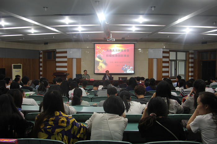 本网讯(437ccm必赢国际版文/殷慧敏、李高举 图/吴鑫远)为进一步增强437ccm必赢国际版青年学生对国际国内形势的认识,激发同学们参军入伍报效祖国的热情,5月27日晚,中国人民解放军陆军军官学院王道云上校(博士、副教授)应邀在财务处二楼报告厅为437ccm必赢国际版学生开展了题为《高度关注国家安全,积极投身国防事业》的专题讲座。讲座由437ccm必赢国际版党委副书记张韬主持。
