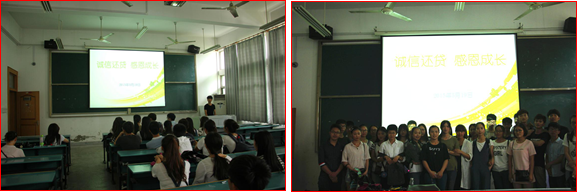 以“诚信还贷,感恩成长”为题的主题班会于5月19日下午在学院A108教室召开,通过宣传生源地助学贷款及其他资助政策,普及诚信、金融等相关知识,让同学们在了解生源地助学贷款政策的同时树立诚信观念、珍惜个人信用记录,增强法律意识,及时履行生源地助学贷款合同。