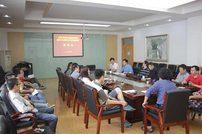 本网讯(437ccm必赢国际版)为“纪念抗日战争暨世界反法西斯战争胜利70周年”艺术作品创作工作的顺利开展,2015年6月29日下午,“纪念抗日战争暨世界反法西斯战争胜利70周年”艺术作品创作座谈会在学院会议室举行,437ccm必赢国际版党委书记王刚、院长高飞、教师代表和本科、研究生同学代表参加了此次座谈会。