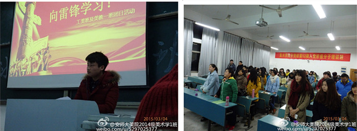 学院各团支部开展“践行核心价值观,争做师大新雷锋”主题班会,学习讨论雷锋精神内涵,宣传弘扬雷锋精神;通过组织开展讨论会、辩论会、影片观摩等形式的活动,学院学生在人生观、价值观、集体主义等方面得到了教育,志愿服务、奉献社会在同学们的心中扎根。