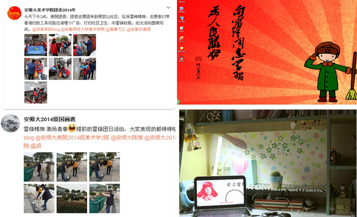 学院充分运用微博、微信、空间等新媒体宣传雷锋事迹,学习雷锋精神。学生从小事做起,从更改电脑学雷锋主题活动壁纸开始,营造了学习雷锋活动的良好氛围。