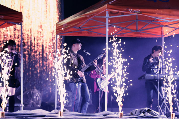 晚上六时许,风雨中的音乐节现场人头攒动,在众多同学的阵阵欢呼声中,激情热烈的开场舞拉开了“这个音乐节”的序幕,五支乐队相继进行了暖场表演。蓝色潜艇的一首《zombie》,其摇滚的魅力瞬间征服了在场的观众。紧接着制造乐队、播音747等乐队非凡的演绎、默契的配合,一段段摇滚把观众带进了音乐的殿堂。