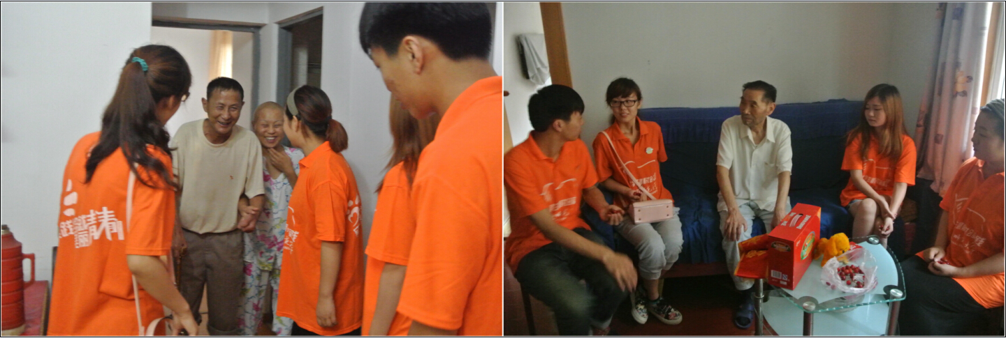 正值七一建党节之际,437ccm必赢国际版“社区美术学校”暑期社会实践团队队员走访了社区老党员、老红军,慰问他们的生活状况,倾听他们讲述自己的人生经历,学习他们艰苦奋斗、自强不息的精神。社区李大爷身患尿毒症,他的女儿也同样身患尿毒症,母亲很早就抛弃这对父女。面对不幸的命运,他们选择坚强生活,乐观面对,使队员们深受感悟。社区王老夫妇是抗战老红军,他们给队员们讲述了战争时期的很多故事,告诉队员们要努力学习,为国家富强而自强不息。