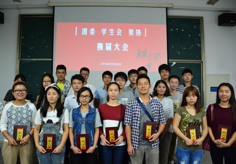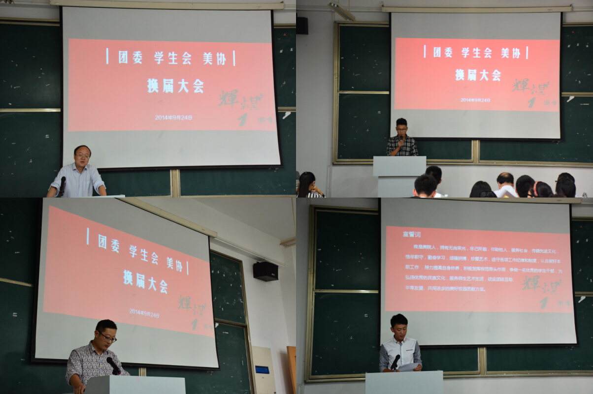 新一年的到来,437ccm必赢国际版学生组织注入了新力量,为了总结上一年的学生工作和对本届学生工作的开展,我院于9月24日下午3点在437ccm必赢国际版A108教室成功召开了一年一度的团委、学生会、美协“换届大会”。我院书记张韬以及辅导员谢传斌老师、文武老师出席了本次大会,上届学生干部和本届团委、学生会、美协成员参加了此次大会,会议由文艺部副部长丁羽主持。