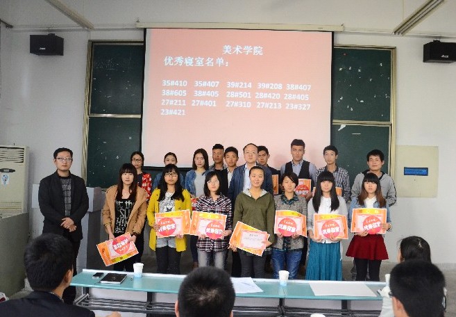 2013级辅导员文武首先宣读了寝室卫生评比规定,包括评比等级、评比注意事项以及综合测评加分等内容。随后2011级环境艺术设计专业学生裴敏代表优秀寝室长从卫生情况、学习情况和人际关系等三个方面做了简短的发言。紧接着张韬为本次寝室文化节启动仪式致辞。张韬在致辞中表示,寝室是同学们思想交流的重要阵地、锻炼社交能力的理想空间,是同学们培养良好习惯的基地和培养综合素质的重要场所,希望同学们以此次星级寝室评比为契机、以寝室文化建设为抓手、以星级文明寝室为目标加强寝室文化建设,把寝室建设成一个锻炼综合能力、各方面人才能够凸显的重要场所。