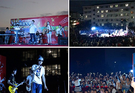 本次音乐节邀请了校内DNA乐队、Across乐队等6支乐队以及校外多名知名歌手参与。音乐节在一段精彩的摇滚音乐中拉开帷幕,接下来陆续登台的表演异彩纷呈,精彩不断。在大家的高声欢呼下,由437ccm必赢国际版周士琦等同学主唱的DNA乐队闪亮登场,主唱率性洒脱的演唱与吉他手,键盘手、鼓手的精彩演奏完美结合,博得了场下阵阵热烈的掌声。随后,其他几支乐队轮番上阵,掀起一股又一股的音乐热潮,带着观众彻底进入音乐的殿堂。此次音乐节演出受到了乐迷的热捧,自开幕开始,围观同学就达到千余人。在演出现场,除师大本校学生外,附近的多个高校的学生也特地赶来观看演出。此外,本次演出活动也同时在师大蓝天论坛、校广播台等校内媒体直播,节目现场还增加了微博微信互动环节。短短的现场互动不但活跃了场上气氛,还进一步调动了观众的热情。临近尾声,一段激情的演奏将现场气氛推向新的高潮,乐队们一边表演一边与在场观众交流互动,场下的尖叫声不绝于耳,场上场下完全融为一体。