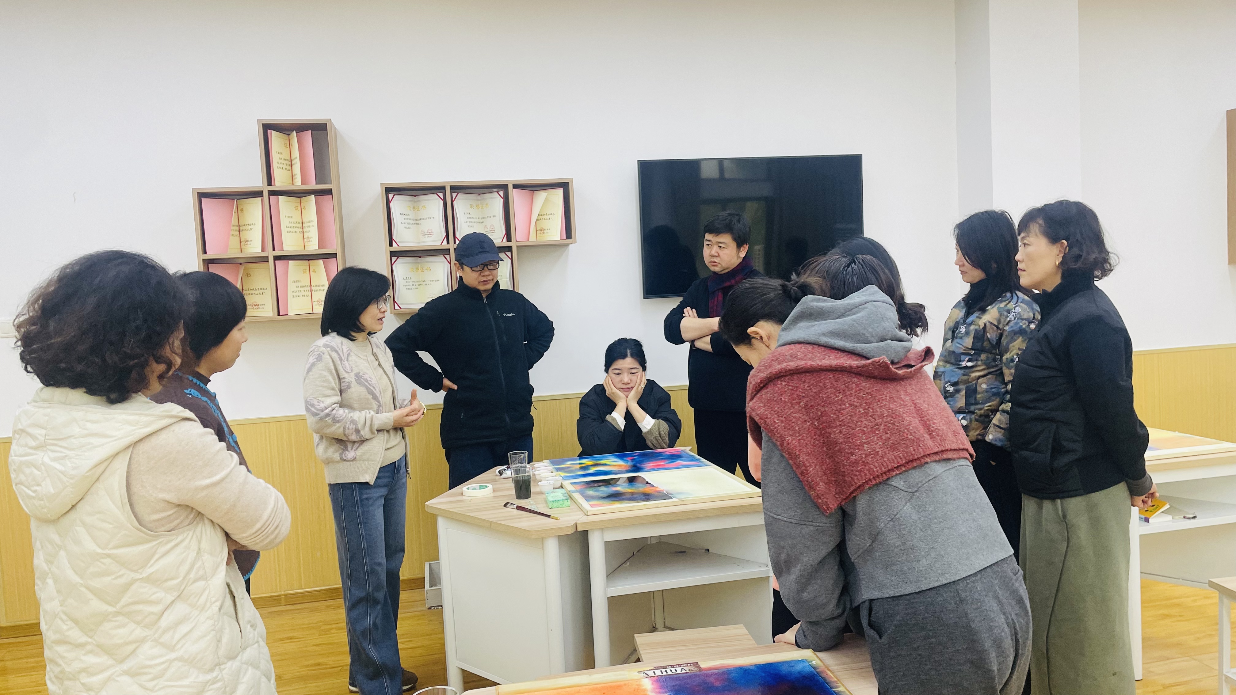 “这不仅是一次心理的放松,更是一次对艺术功能的重新认识,”环境艺术设计专业的李颖老师深有感触。“从传授技能到倾听内心,美术原来可以如此贴近人的心灵需求。”这是许多参与者的反馈,工作坊带来的不仅是技巧的积累,更是一种观察视角与教育观念的更新,为未来的教学与创作注入了新的可能性。“平时忙于教学,很少有机会静心感受材料与过程,这四天让我重新找回了创作的纯粹快乐,也学会了用艺术的方式调节情绪。”雕塑专业的李品老师感触颇深。