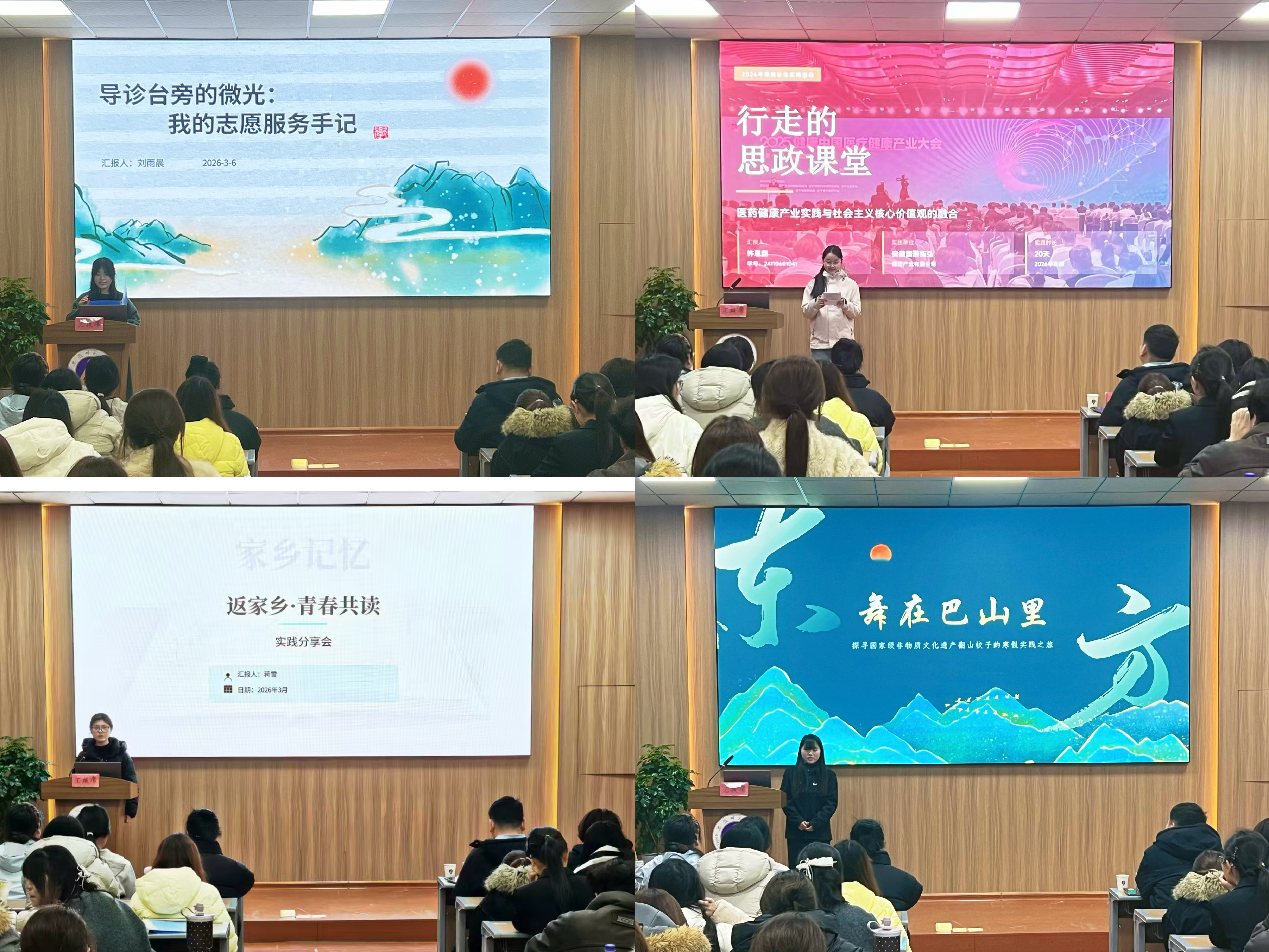 寒假社会实践志愿者代表依次进行展评汇报,他们从活动筹备、实施过程、实践感悟、成果收获、社会效应等方面多维度展示丰硕成果。