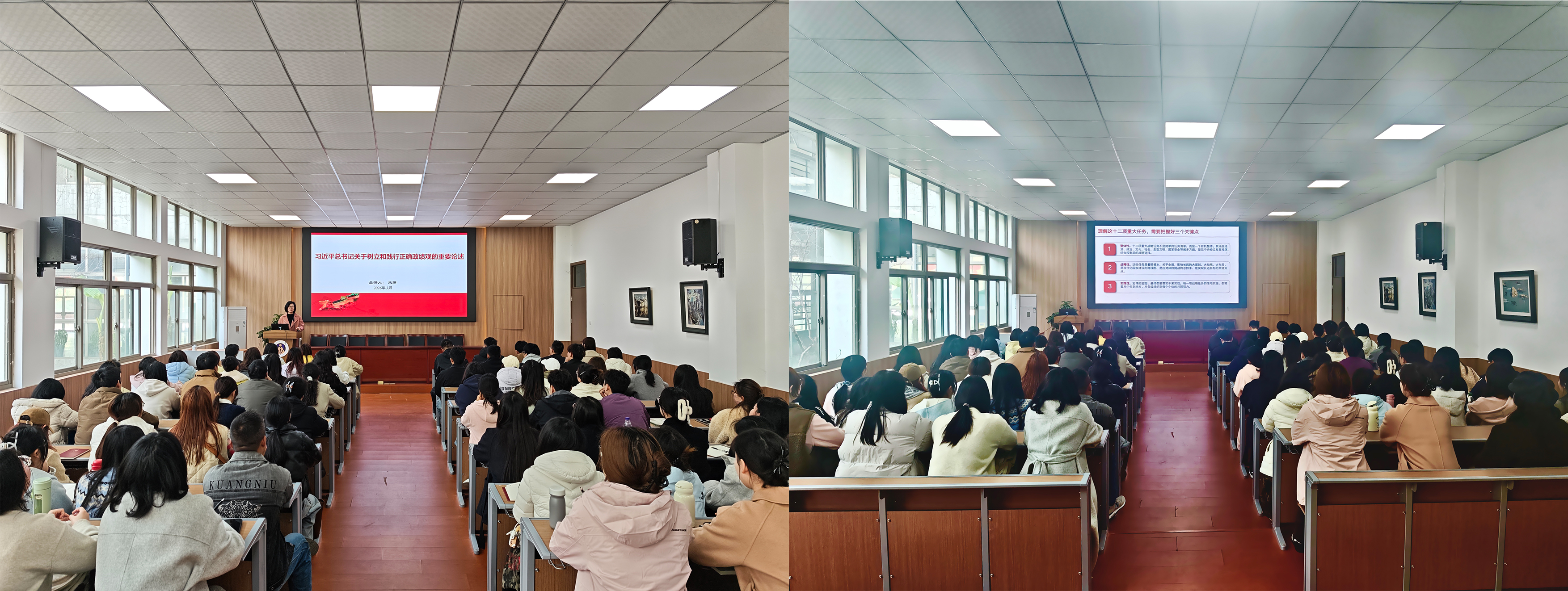 3月25日下午,学院党委书记朱琳作《习近平总书记关于树立和践行正确政绩观的重要论述》辅导报告,从深刻领会树立和践行正确政绩观的历史背景、准确把握树立和践行正确政绩观的核心要义、树立和践行正确政绩观的责任担当等三个方面,对学习教育的要点进行系统的解读与阐述,叮嘱广大党员要筑牢信仰之基,做政治上的明白人;走好群众路线,做服务群众的贴心人;坚持实事求是,做科学决策的内行人;勇于担当作为,做攻坚克难的带头人;严守纪律规矩,做遵规守纪的老实人。报告结束后,与会人员共同视频学习了党的二十届四中全会集中轮训的指定课程。根据安排,读书班后续将择机开展实践访学活动。