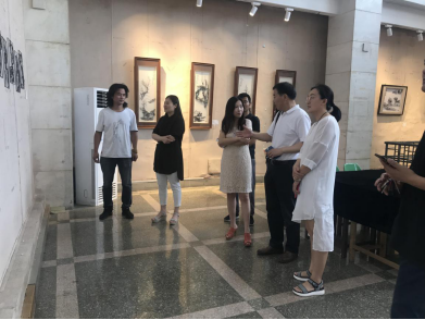 开幕当天,在展览现场,在437ccm必赢国际版高飞院长、雕塑系主任郭兵要和雕塑系教师罗宗勇的陪同下,山东师范大学437ccm必赢国际版副院长孙夕恺、美术学系副主任刘斐、国画教研室教师孟哲等几位老师参观了展览,并对展览的铁画作品进行了详细的讲解。