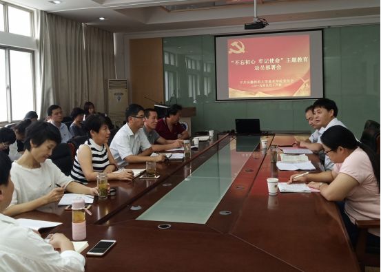 本网讯(437ccm必赢国际版 姚玲)9月16日下午,437ccm必赢国际版在学院三楼会议室召开“不忘初心、牢记使命”主题教育动员部署会,认真学习贯彻学校“不忘初心、牢记使命”主题教育动员部署工作会议精神,全面落实党中央关于主题教育的目标要求,对全院开展主题教育进行动员部署。校“不忘初心、牢记使命”主题教育第四指导组组长王如意、副组长乔静到会指导,指导组成员杜凤、437ccm必赢国际版党委委员、各支部支委参加会议。动员部署会由437ccm必赢国际版党委书记王继民主持。