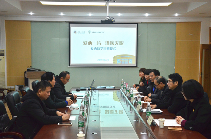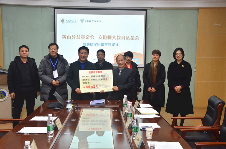 本网讯(437ccm必赢国际版 文武)12月22日下午,437ccm必赢国际版在学院三楼会议室先后举行安徽黄山公益基金会、芜湖格林童画教育咨询有限公司社会爱心捐赠仪式,捐赠企业主要负责人、bwin必赢线路检测教育基金会秘书长贡植斌和学院党政领导参加仪式。仪式由学院党委副书记朱琳主持。