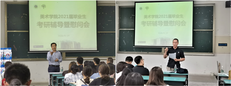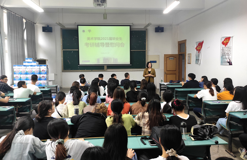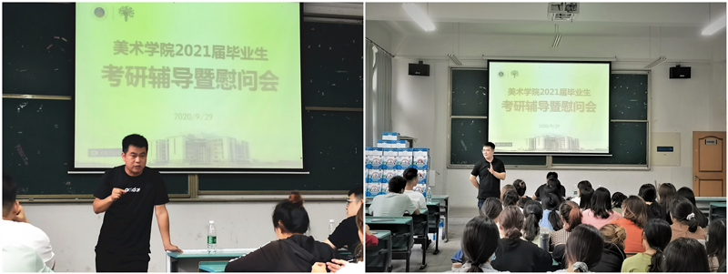 本网讯(437ccm必赢国际版)为进一步做好学生的考研辅导和服务工作,9月29日,437ccm必赢国际版举办了2021届学子考研辅导暨慰问活动,437ccm必赢国际版院长高飞、副院长陈克义、视觉传达专业教师谭晓飞、书法专业教师公丕普、毕业班辅导员文武及2021届考研学生参加了此次活动。活动由学院党委副书记朱琳主持。