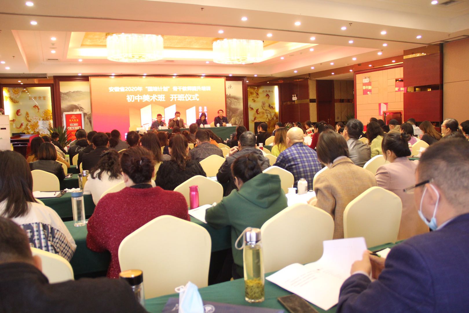 2020年10月26日,安徽省2020年“国培计划”骨干教师提升培训初中美术研修班90位学员前往bwin必赢线路检测报到,开启了为期20天的研修之旅。27日上午,437ccm必赢国际版在江城芜湖外经广场凯莱大饭店三楼九华厅举行了研修班开班典礼。437ccm必赢国际版院长高飞、首席专家朱德义教授、班主任杨涛老师出席了会议,开班典礼由437ccm必赢国际版副院长刘曼玉主持。