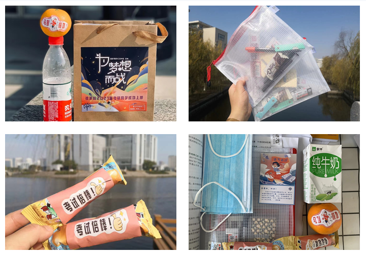 学院还为考研学子们精心准备了“为梦想而战”考研加油包,其中包含考试用笔等必备文具、“暖心”考研寄语卡及牛奶、棒棒糖、水果等包含考试倍“棒、马到“橙”功等美好祝愿的物品。同学们纷纷表示,此举非常暖心,备受感动,自己也会在最后冲刺阶段再接再厉,争取考出好成绩。