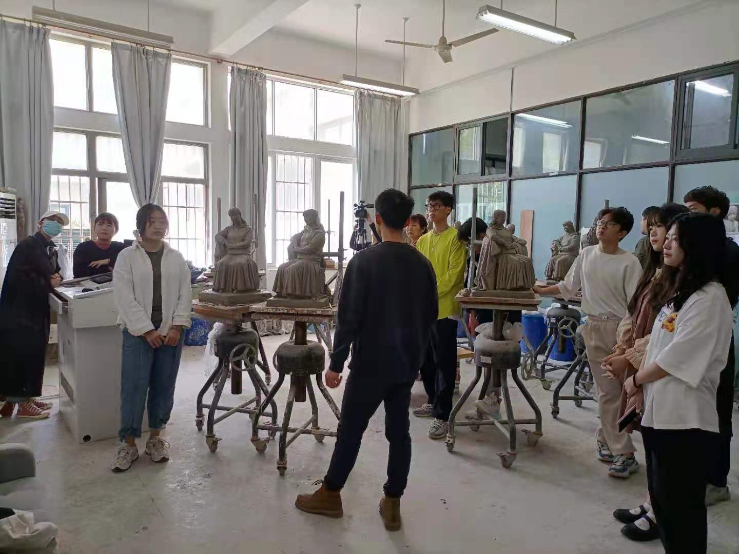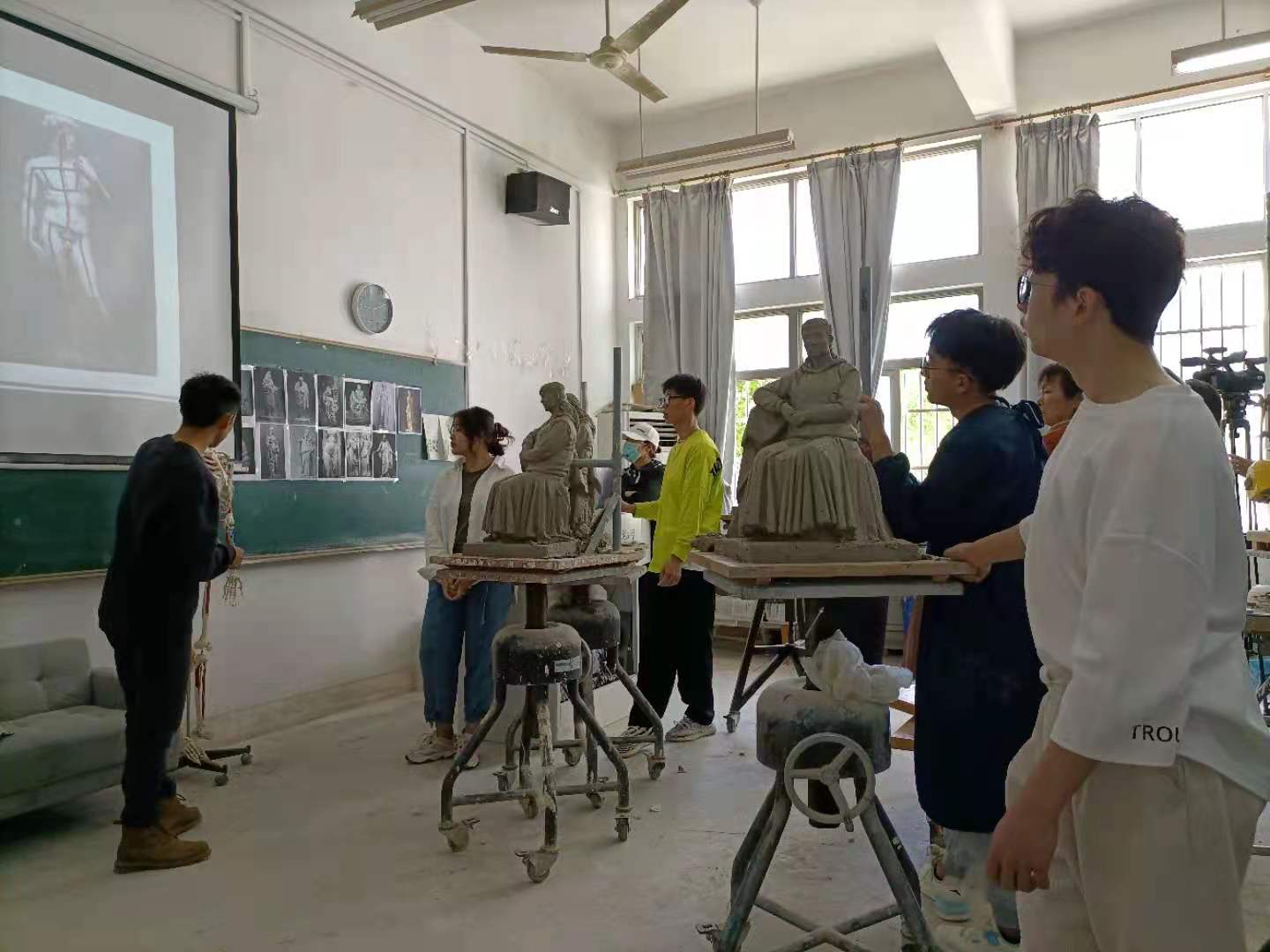罗宗勇老师的公开课为“泥塑80公分着衣”,课程中以PPT结合泥塑示范作品,理论联系实际,针对如何用科学的观察方法塑造一件优秀的人物作品进行了多方面的讲解。强调泥塑衣纹写生训练中最为重要的是整体观察法,而要学习整体观察的方法,就必须要熟练的掌握比例、动态、重心、轮廓、形体与体积、衣纹形成的规律这六个知识要点。在示范、讲解的过程中,罗宗勇老师将教学内容和之前所学的其他课程知识进行有机联系,准确到位的技法展示、形象轻松的语言表达让学生充分理解课程的重点和难点部分。