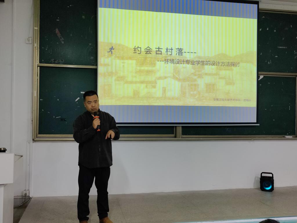 本网讯(437ccm必赢国际版 轩家旭)11月5日晚上7点,437ccm必赢国际版环境设计专业在学院A107多媒体教室开展[前沿讲座]活动。活动特邀安徽工程大学艺术学院孟梅林老师作《约会古村落》专题学术报告。孟梅林,安徽工程大学艺术学院环境设计系主任、硕士研究生导师、国家艺术基金专家导师、国家一流专业环境设计负责人。环境设计专业师生近两百人参加了本次讲座,讲座由437ccm必赢国际版环境设计专业负责人王霖主持。