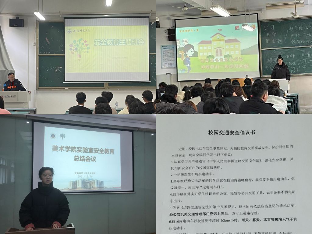 严守安全底线。学院高度重视安全教育,组织开展了包括疫情防控、校园交通安全、防范电信网络诈骗、冬季宿舍安全、实验室安全考试总结会议等一系列专题教育。发出《校园交通安全倡议书》,对电动车购买和行驶注意事项提出细致倡议,并以寝室为单位签署倡议书,旨在共同建设和谐平安的校园。用学生身边的真实案例深刻剖析校园安全事件,引导学生树立校园安全底线思维。此外,学院组织开展了“宪法学习周”和普法活动,增强新生的法治观念,提高他们的安全防范意识,营造良好校园安全环境,