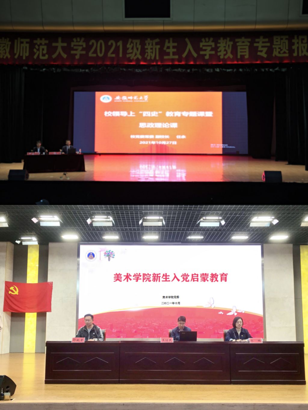 加强思想引领。为引导新生树立正确的世界观、人生观、价值观,不断践行初心使命,10月18日,学院举行2021级新生“三证颁发”大会,在颁发团员证、团章、团徽的过程中教育引导新生不断坚定理想信念。10月20日,学院组织开展了入党启蒙教育,学院党委书记王继民和副书记朱琳分别以《历史的必然,人民的选择》、《学习习近平总书记“七一”重要讲话精神——以红色经典美术作品助力党史学习教育》为题,为2021级新生上了一堂党课。此外,学院党委结合党史学习教育计划安排,于10月27日组织新生参加了校党委常委、副校长任永讲授的《校领导上“四史”教育专题课暨思政理论课》,引导青年大学生树立正确历史观,做到知史爱党、知史爱国,不断提升党史教育实效。