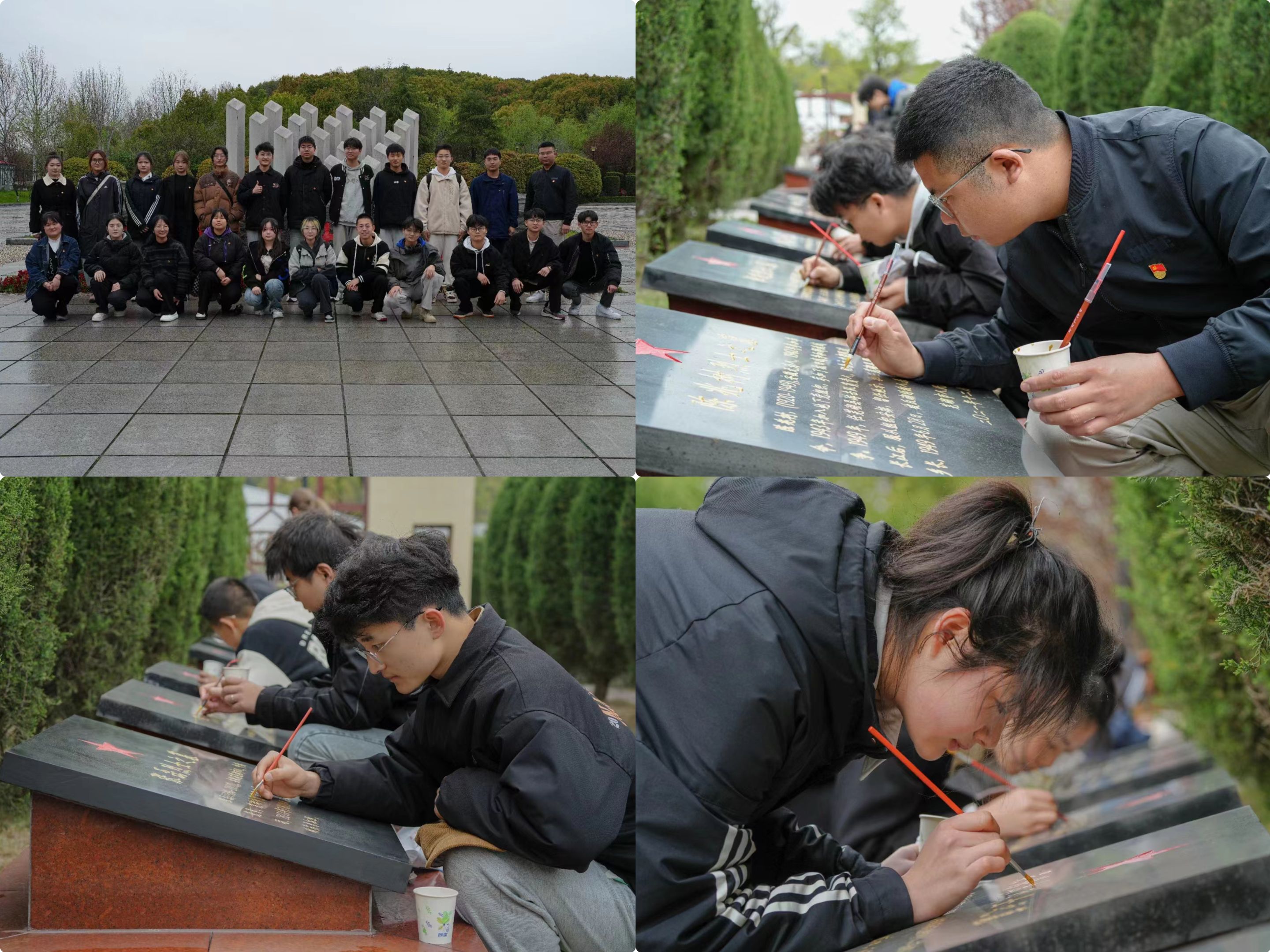 3月25日上午,437ccm必赢国际版2022级本科生辅导员王伟带领26名学生手执画笔,蹲在一块块墓碑前,一笔一画对烈士碑文进行“描金”。437ccm必赢国际版师生细心擦去碑体上的灰尘,再小心翼翼地拿着画笔为墓碑上的字描摹填漆。每一处笔画的描摹,都表达着对烈士的缅怀和敬仰。在一片静默中,碑文焕然一新。在活动开始之前,志愿者们还参观了芜湖市烈士陵园内的烈士事迹纪念馆,追忆他们的英雄事迹,缅怀他们的崇高品格,学习他们的坚定信仰。437ccm必赢国际版2022级美术师范专业学生刘倩表示:“在和平年代,我们学生要做的就是好好学习,努力拼搏,为这个社会做出自己应有的贡献,同时,也要尽最大的努力,用自己手中的画笔,传承红色血脉,让红色基因、革命薪火代代传承。”