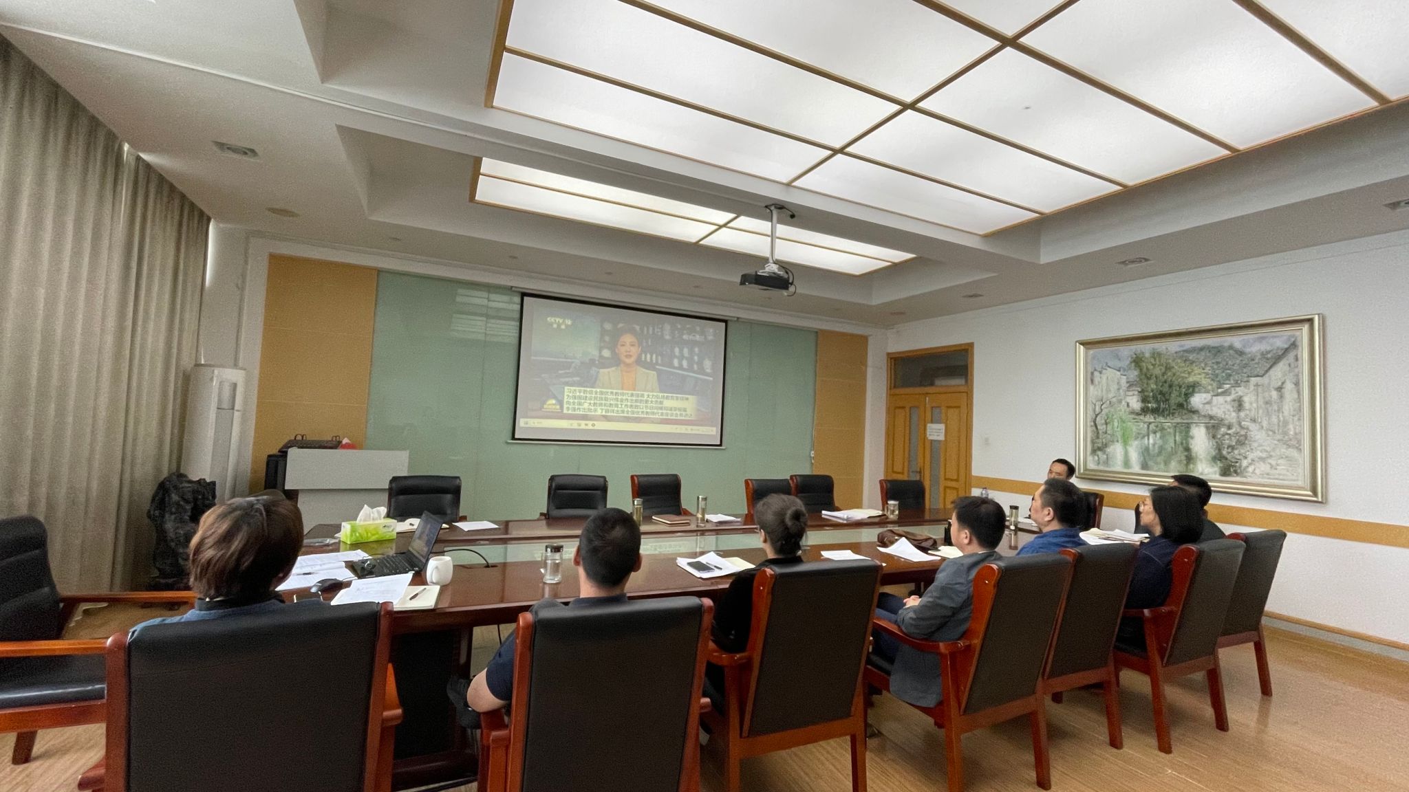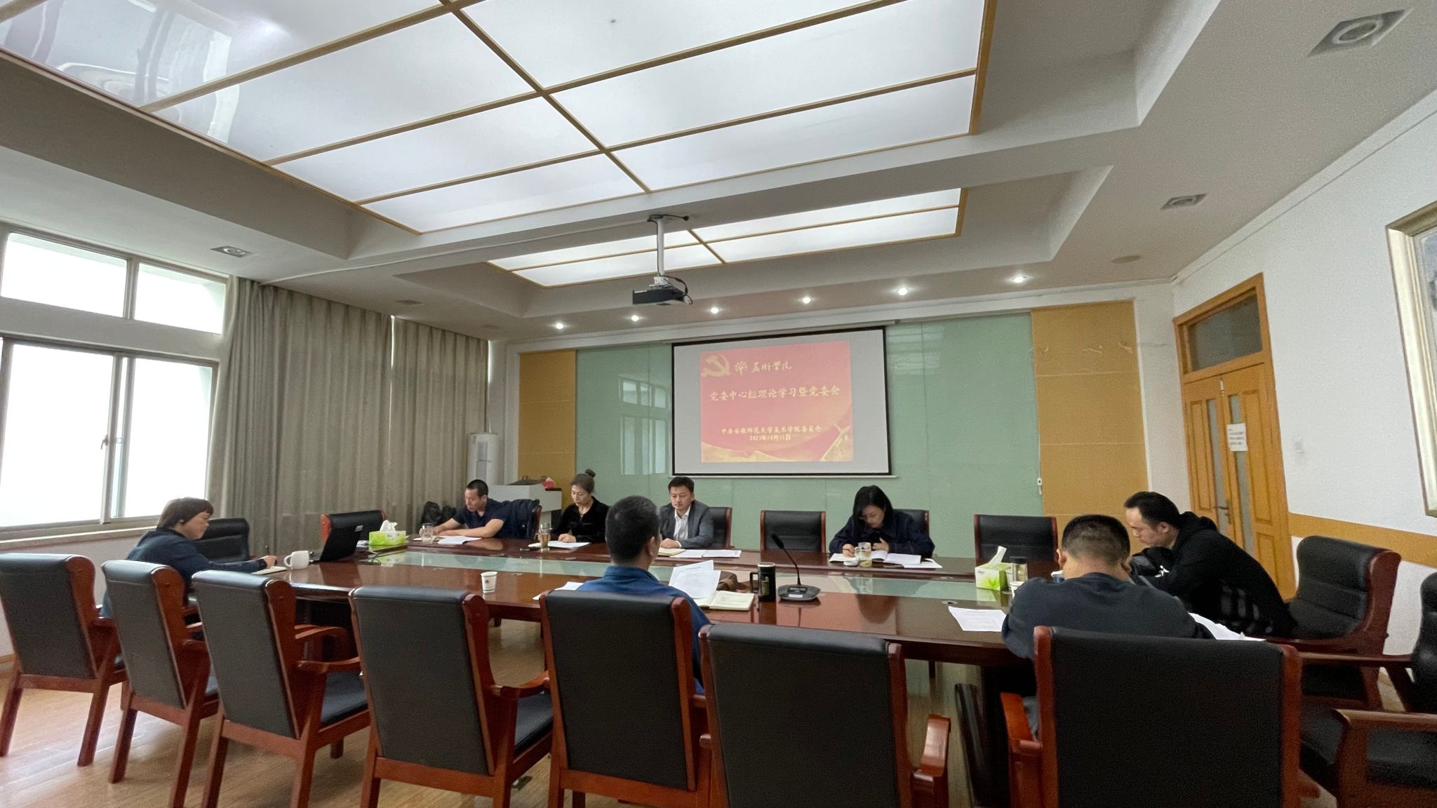 与会人员以观看新闻视频的方式集体学习了习近平总书记在浙江和黑龙江等地考察时的重要讲话精神,集体学习了习近平总书记给全国优秀教师代表的致信和安徽省潜山野寨中学新考取军校的同学们的回信精神。叶丹传达了习近平总书记有关主题教育最新重要讲话精神,朱琳传达了中央纪委国家监委和安徽省纪委监委公开通报的违反中央八项规定精神典型问题。副院长陈琳围绕“习近平新时代中国特色社会主义思想指引下的高水平科学研究”主题,结合个人学习体会和学院工作实际,作了专题研讨发言。