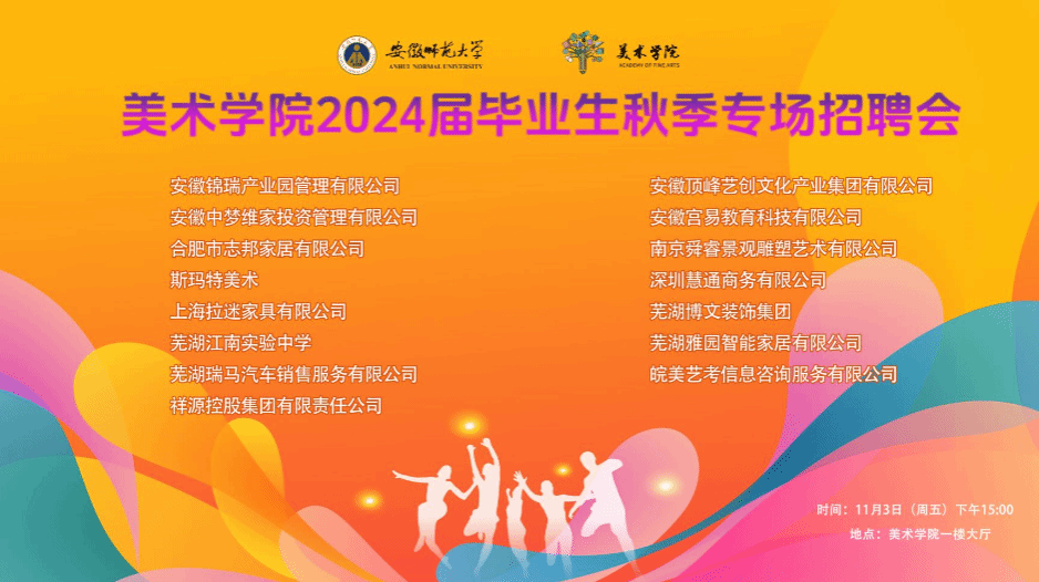 为实现人才供需精准对接,帮助2024届毕业生高质量就业,11月3日,437ccm必赢国际版在学院一楼大厅举办2024届毕业生秋季专场招聘会,上海拉米家具有限公司、深圳慧通商务有限公司、祥源控股集团有限责任公司、南京舜睿景观雕塑艺术有限公司、安徽顶峰艺创文化产业集团有限公司等十四家用人单位应邀参加,全体2024届毕业生参加招聘会。