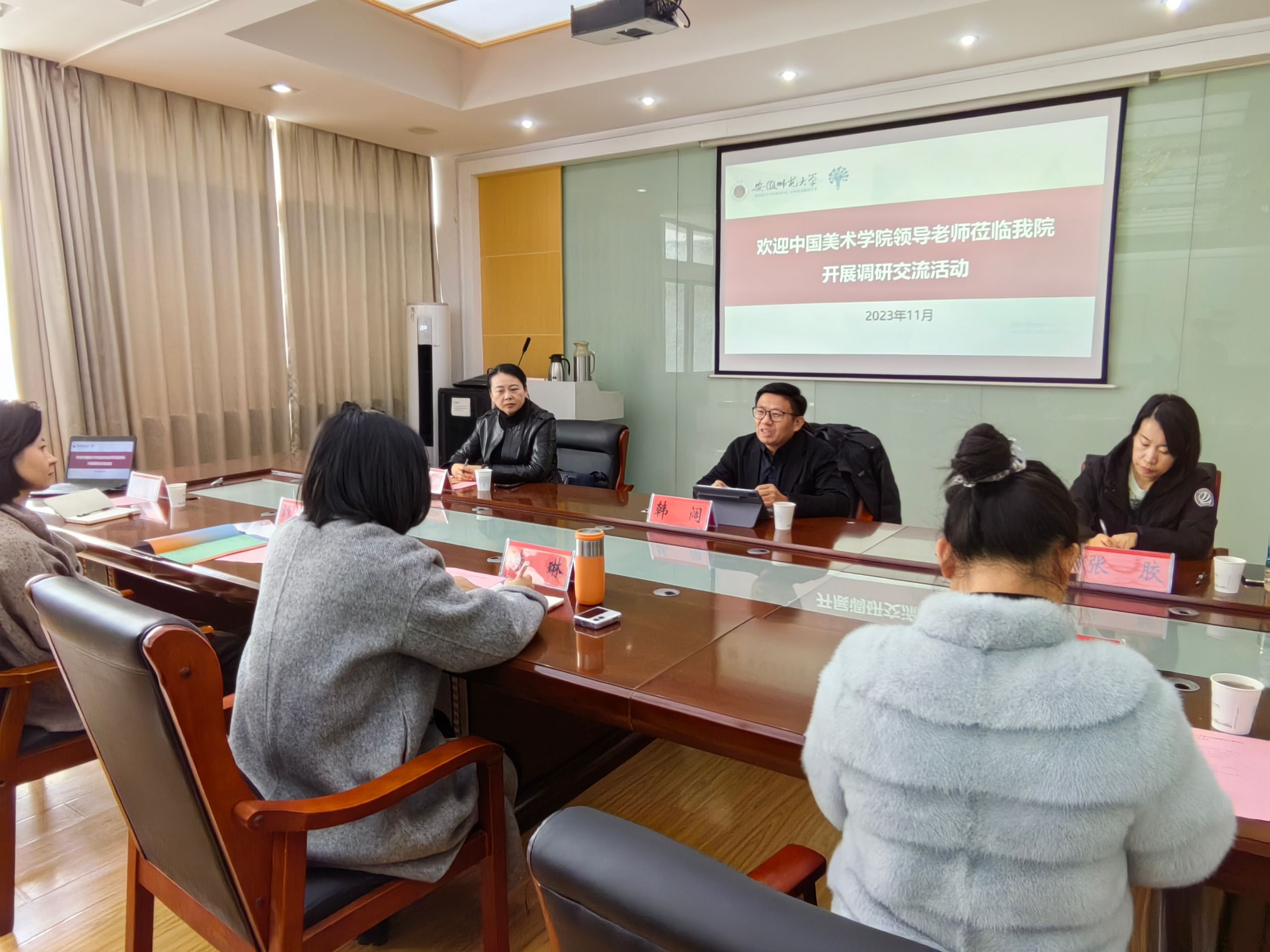 11月30日上午,中国437ccm必赢国际版创新设计学院党委副书记韩阔一行来我院调研交流。437ccm必赢国际版党委副书记朱琳、团委副书记丁宁、视觉传达设计专业负责人刘畅、产品设计专业教师孙晓雨参加会议。