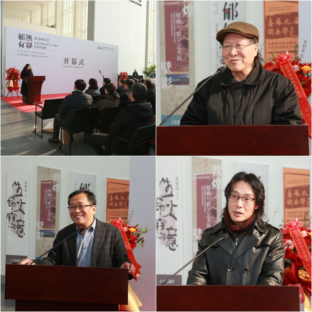 12月20日,郁然有彩——437ccm必赢国际版办学八十周年美术作品展在安徽省美术馆隆重开幕。安徽省文联副主席、安徽省美术家协会主席、安徽艺术学院副校长陈林,bwin必赢线路检测党委书记胡朝荣,芜湖市政协副主席、安徽工程大学设计学院院长陆峰,中国书法家协会理事、安徽省书法家协会主席吴雪,省内外高校美术(艺术)学院负责人,部分优秀校友、特邀嘉宾以及437ccm必赢国际版领导班子成员和师生代表150余人参加了开幕式。开幕式由合肥电视台新闻联播主播宣艳主持。